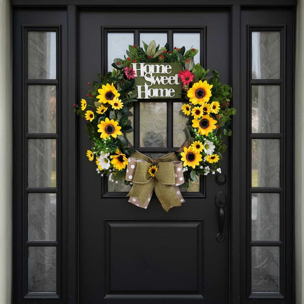 Pequena em tamanho e gigante em charme, nossa Wildflowers é uma guirlanda artesanal em formato de cesta, com base em juta e renda. Seu arranjo de flores silvestres coloridas e a placa “HOME” central tornam a peça única, rústica e cheia de alegria, ideal para qualquer porta ou cantinho especial da casa.