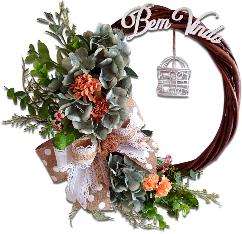 Traga o charme e a tranquilidade do interior francês para a sua casa com a Guirlanda Provence. Esta peça artesanal é uma fusão perfeita de elementos rústicos e delicados, ideal para dar as boas-vindas com um toque de elegância atemporal. A base de galhos de vime juntamente com as palavras “Bem Vindo”, além de uma linda gaiola de passarinho aramada, se tornam um convite caloroso para todos que se aproximam.
