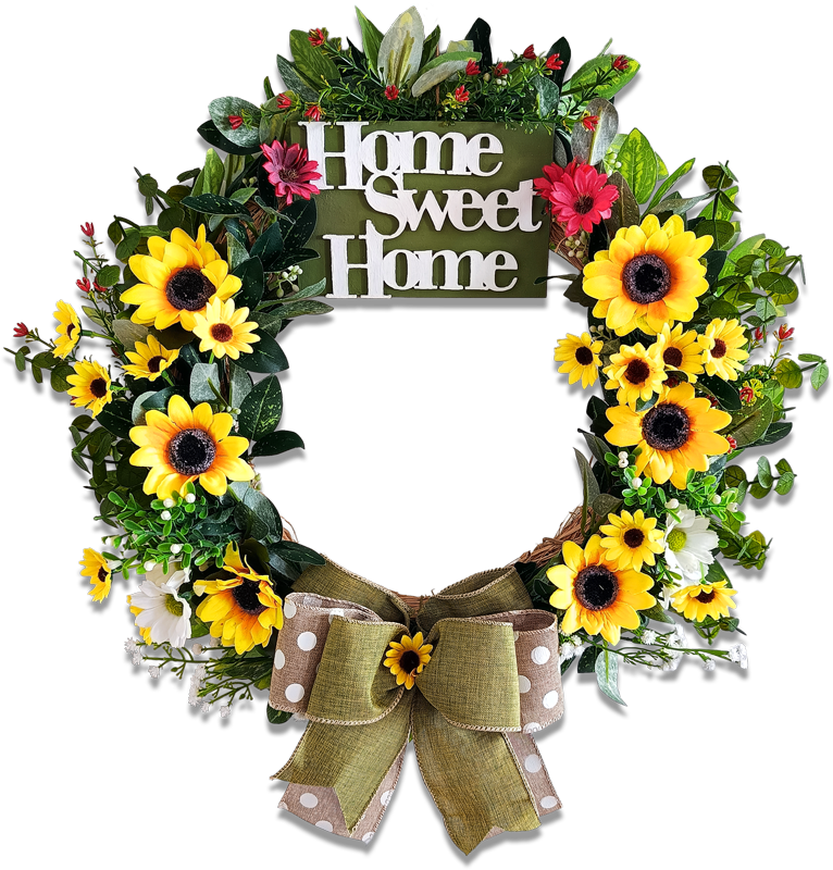 Celebre a alegria e o calor do lar com a Guirlanda Rustic. Esta peça vibrante e acolhedora é uma ode à beleza do campo e à sensação de conforto. Feita sobre uma base de palha, ela é o cenário perfeito para os girassóis que imediatamente iluminam qualquer ambiente. A placa em mdf pintada à mão com a frase “Home Sweet Home” adiciona um toque sentimental e clássico, reforçando a mensagem de lar doce lar. A Guirlanda Rustic é a escolha ideal para dar as boas-vindas com um toque de otimismo, brilho e a promessa de um lar cheio de afeto e luz.